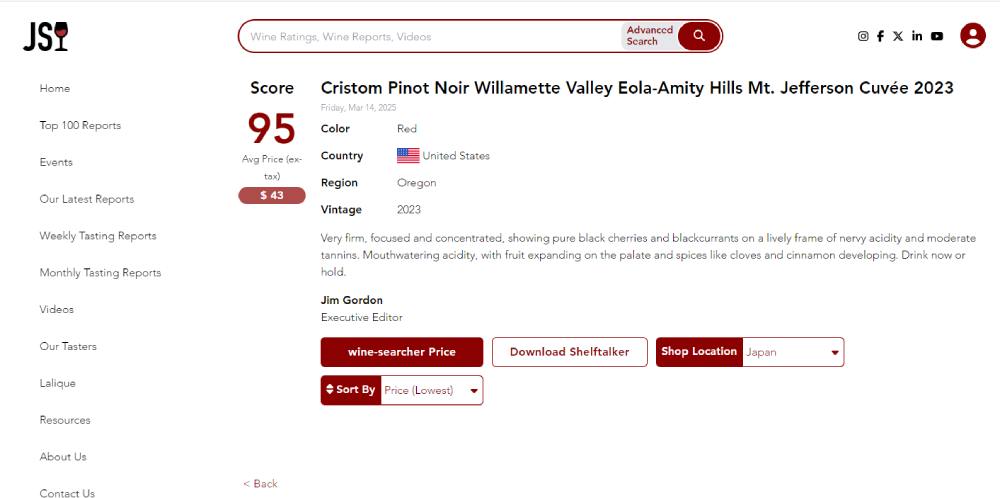 今回ご紹介する2023年ヴィンテージも評価誌ジェームズ・サックリングにて【95点】という高評価を得ています。
