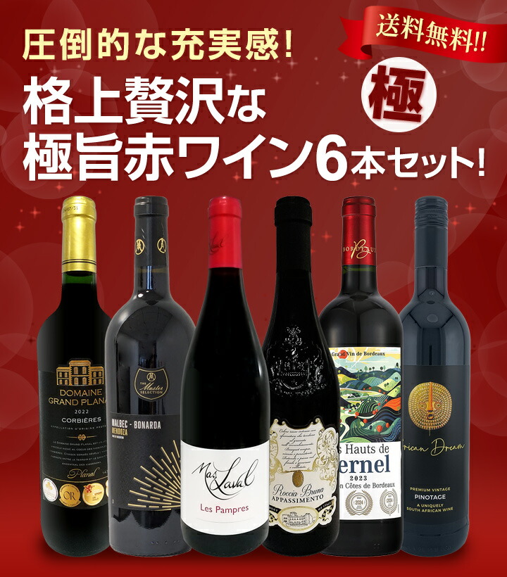 赤ワイン好きのための当店さらなる≪極≫超厳選! 1本あたり1,559円(税込)で超贅沢赤ワイン! 飲み応え抜群の極旨6本!