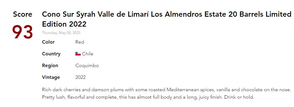 今ヴィンテージも評価誌93点獲得!
