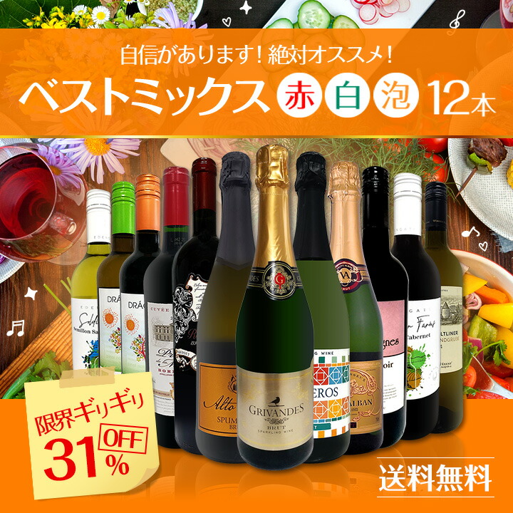 白泡750ml x 4本、赤750ml x 5本、白750ml x 3本