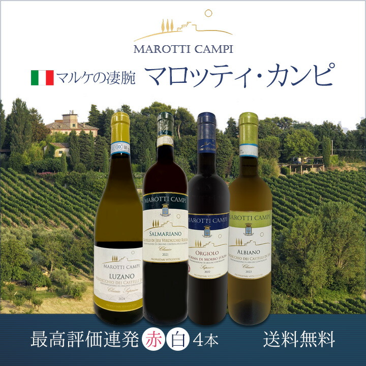 今や、イタリアを代表するワイナリーの仲間入りを果たした、 マルケ州の凄腕[マロッティ・カンピ]!! イタリアソムリエ協会発行の[ドゥエミラヴィーニ]で最高評価!! スーパー・ヴェルディッキオ[サルマリアーノ]に、 フレンチ・オークの小樽で熟成させたラクリマのトップ・キュヴェ[オルジョーロ]!! そして!!≪前ヴィンテージはスペクテーター92点!!≫極旨ヴェルディッキオ[ルザーノ]に、 コスパ抜群の超快適ヴェルディッキオ[アルビアーノ]!! トップキュヴェから普段飲みのまで極旨揃いの4本!! 個別にご購入頂くよりも断然お得です!!