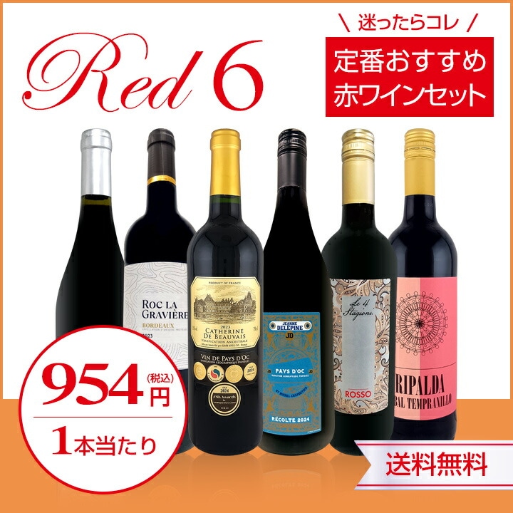 どれもオススメの充実した味わい6本! 普段使いに丁度いい1本当たり954円(税込)で毎日食卓が華やかに! 当店が自信をもってお届け致します!!! 是非とも赤ワイン好きのみなさま、お買い求め下さい。