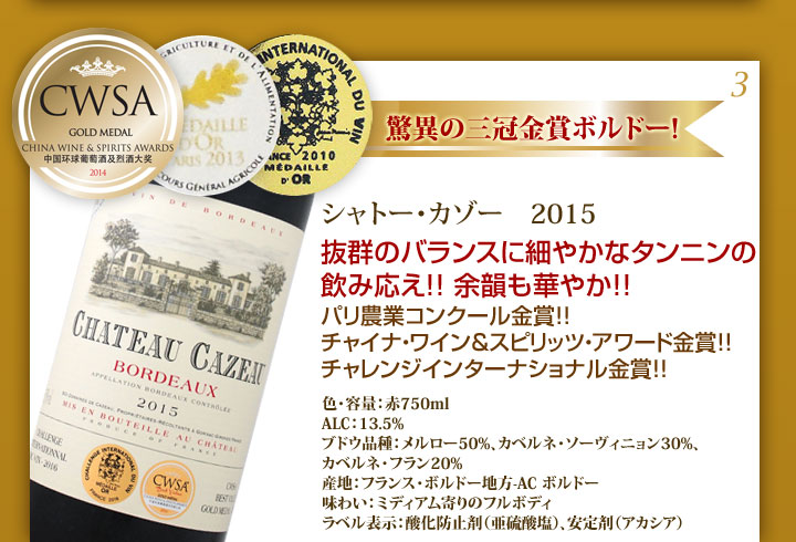 驚異の三冠金賞ボルドー!