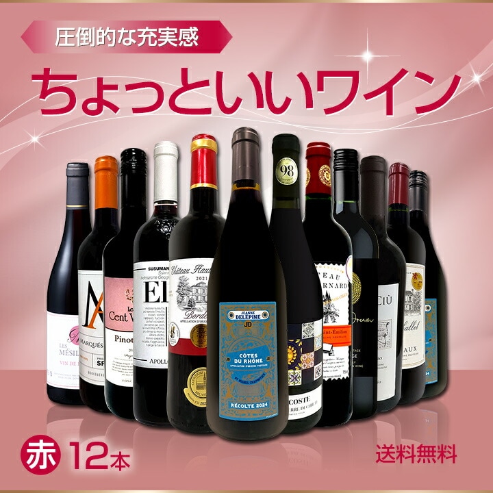 圧倒的な充実感!ちょっといい赤ワイン12本セット! 1本当たり1,250円(税込)以下で人気の各国から、 贅沢にオススメ赤ワインばかりを12本揃えました!