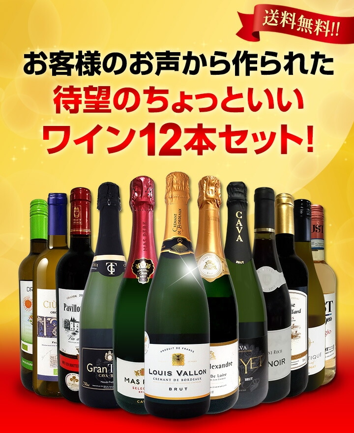 『もっともっといろんなワインを飲んでみたい!!』 そんなお客様のお声から作られた待望の ちょっといいワイン12本セット!