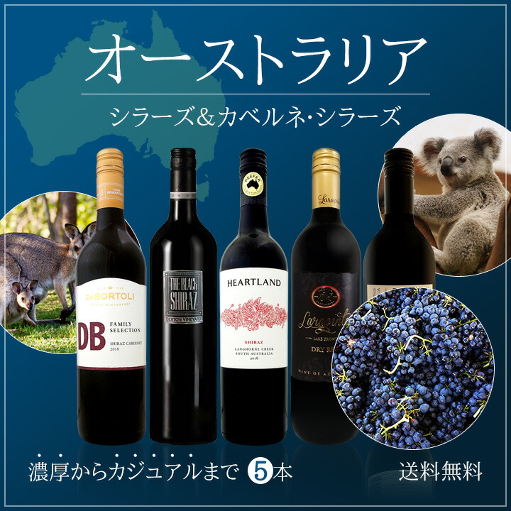 シラー、シラーズ好き、オーストラリア・ファンの皆様! 濃厚シラーズを中心に多彩な豪州シラーズ&シラーズ・カベルネ5本セット!