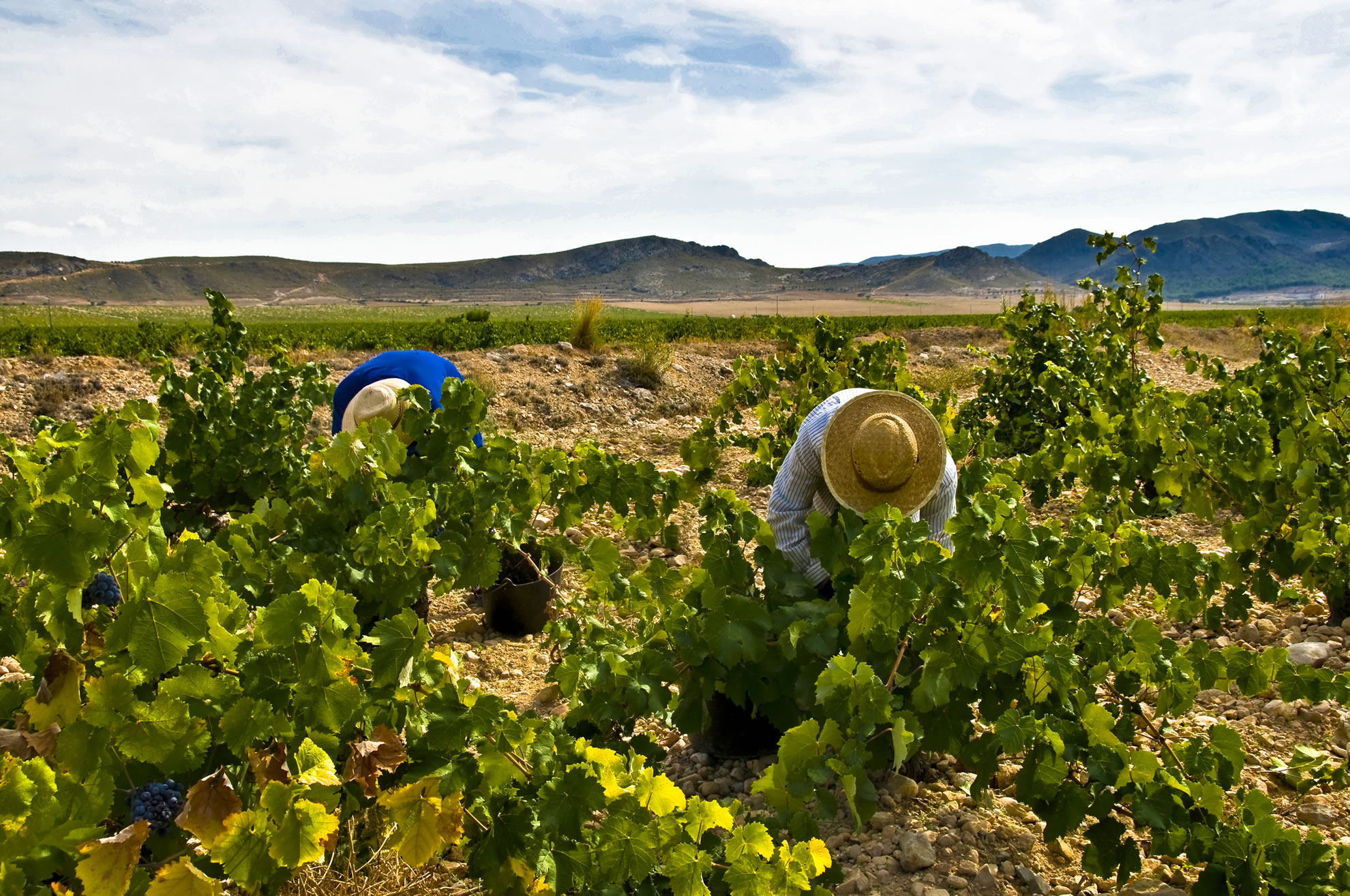 古木のモナストレルは株仕立てで樹高が低いため、収穫作業は重労働です。