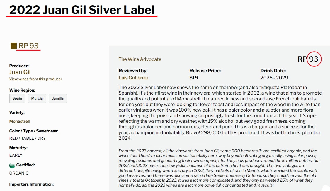 この2022年ヴィンテージがパーカー【93点】獲得!!『バーゲン、お買い得』『飲みやすさにおいてチャンピオンのワイン』『ブラボー!』と激賞されています!! ロバート・パーカー氏主宰[ワインアドヴォケイト]では、このワインの2013年ヴィンテージからほぼ毎年91点以上を献上し続けています。