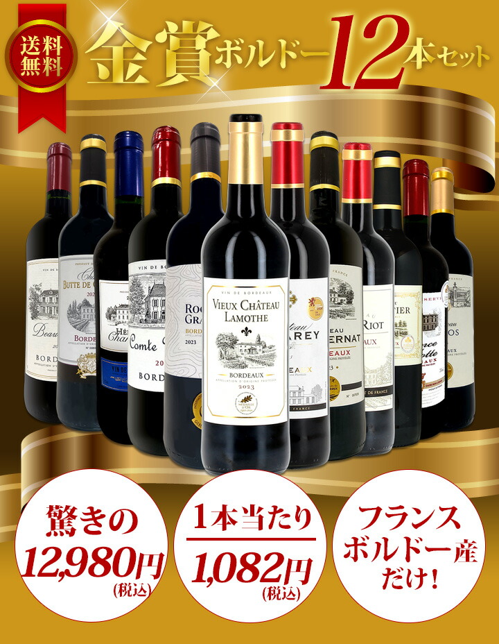 なんと1本あたり1,082円!!(税込)充実の≪金賞ボルドー≫12本!