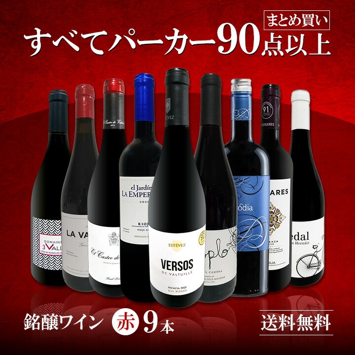 なんと!9本すべてパーカー90点以上!赤ワインだけ! なのに驚きの15,400円(税込)!1本あたり1,712円(税込)!