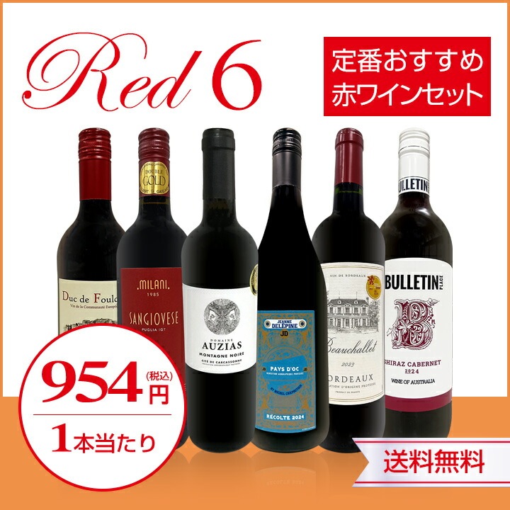 どれもオススメの充実した味わい6本! 普段使いに丁度いい1本当たり954円(税込)で毎日食卓が華やかに! 当店が自信をもってお届け致します!!! 是非とも赤ワイン好きのみなさま、お買い求め下さい。