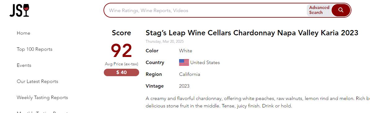 [スタッグス・リープ・ワイン・セラーズ・カリア・シャルドネ 2023]