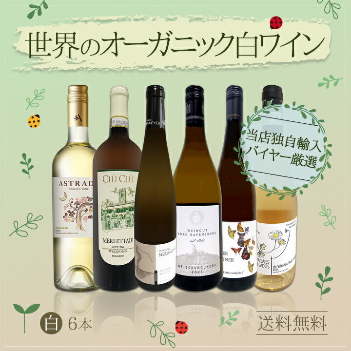【送料無料】★当店独自輸入★バイヤー厳選★世界のオーガニック白ワイン6本セット!