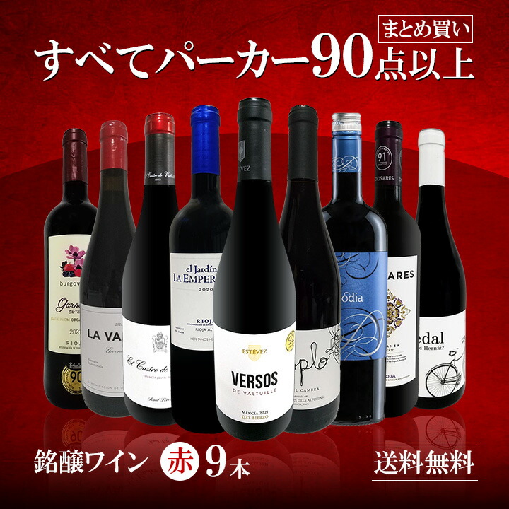なんと!9本すべてパーカー90点以上!赤ワインだけ! なのに驚きの15,400円(税込)!1本あたり1,712円(税込)!