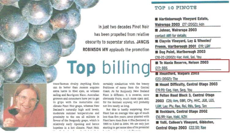 2005年には、デカンター誌において、ジャンシス・ロビンソン氏からニュージートップ10のひとつとして選出された実績をもっています。ほかにも、ニュージーランドの権威ある「Bragato Wine Awards」では過去にトロフィーを獲得しています。(参加ワイナリー数は、約100エントリーの中で、ナンバーワンになりました!)。