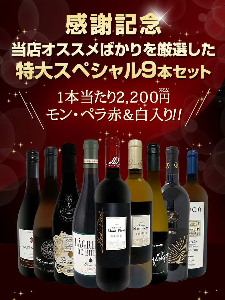 赤750ml x 5本、白750ml x 4本